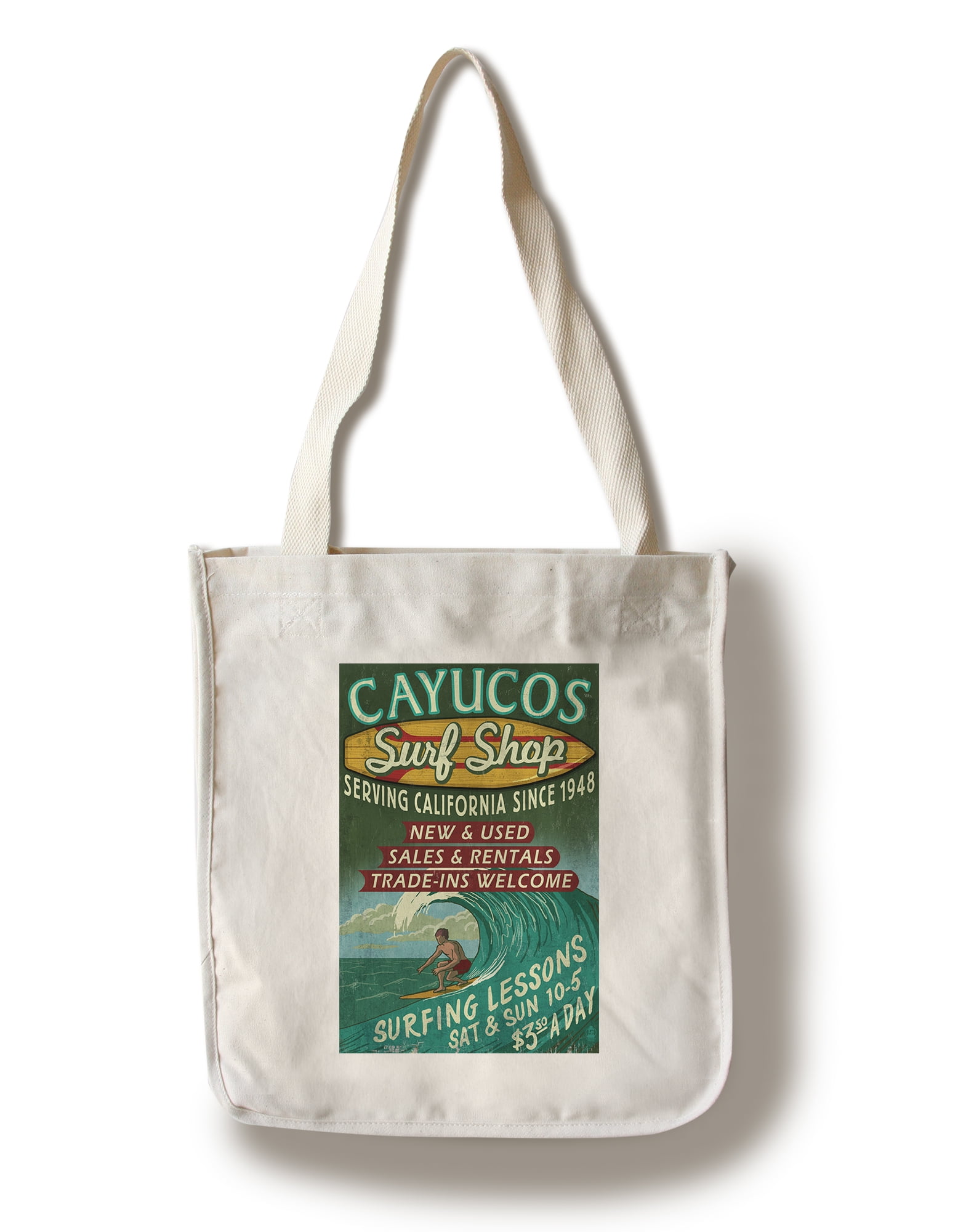 Cayucos California Surf Shop Vintage Sign Lantern Press Poster 100 Cotton Tote Bag Reusable Walmart Com